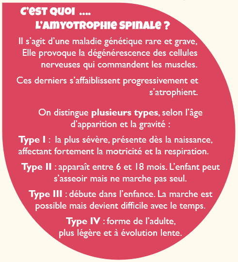 Elle a été créée afin de mettre en place des actions solidaires et caritatives au service des personnes atteintes d’Amyotrophie Spinale.